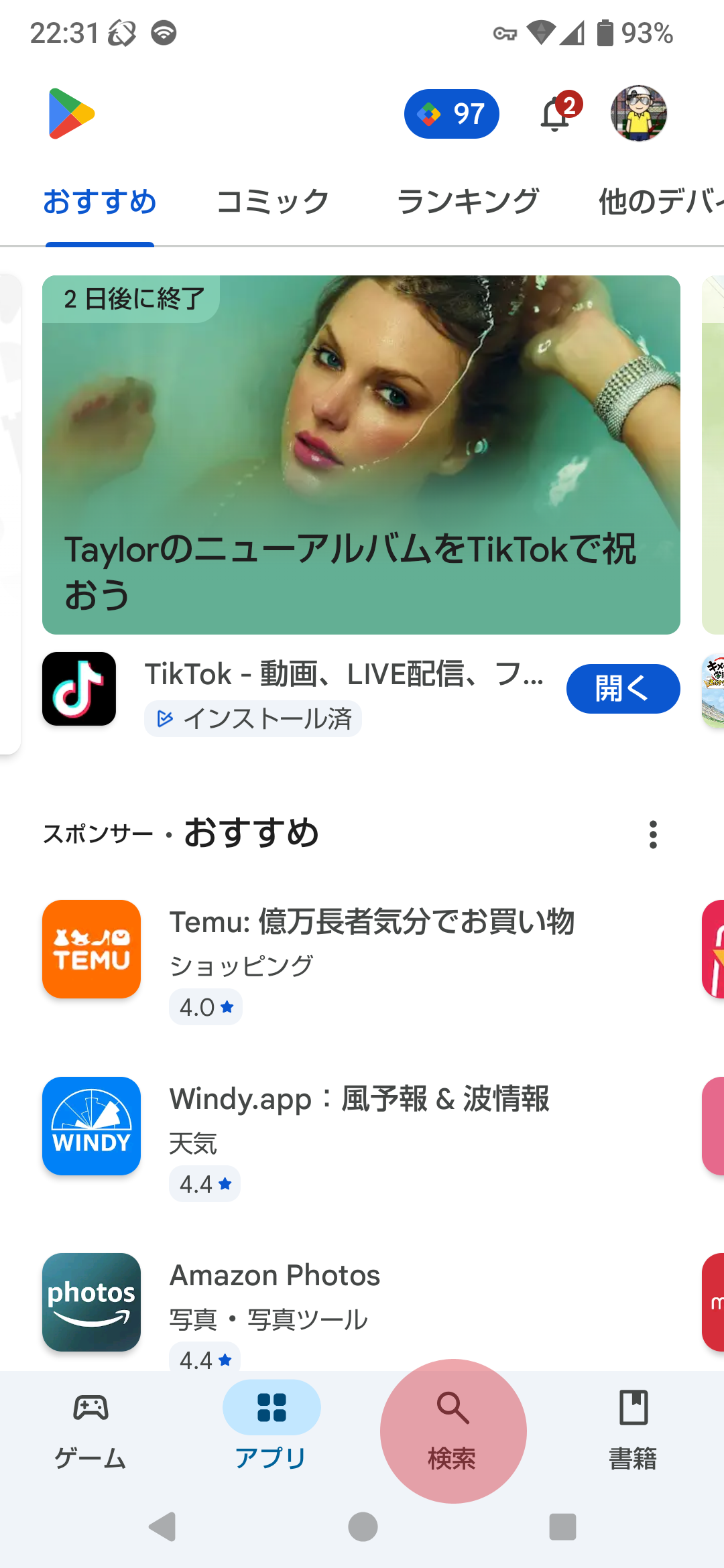 | 1 | ![]() | googleストアのアイコンを選択 |