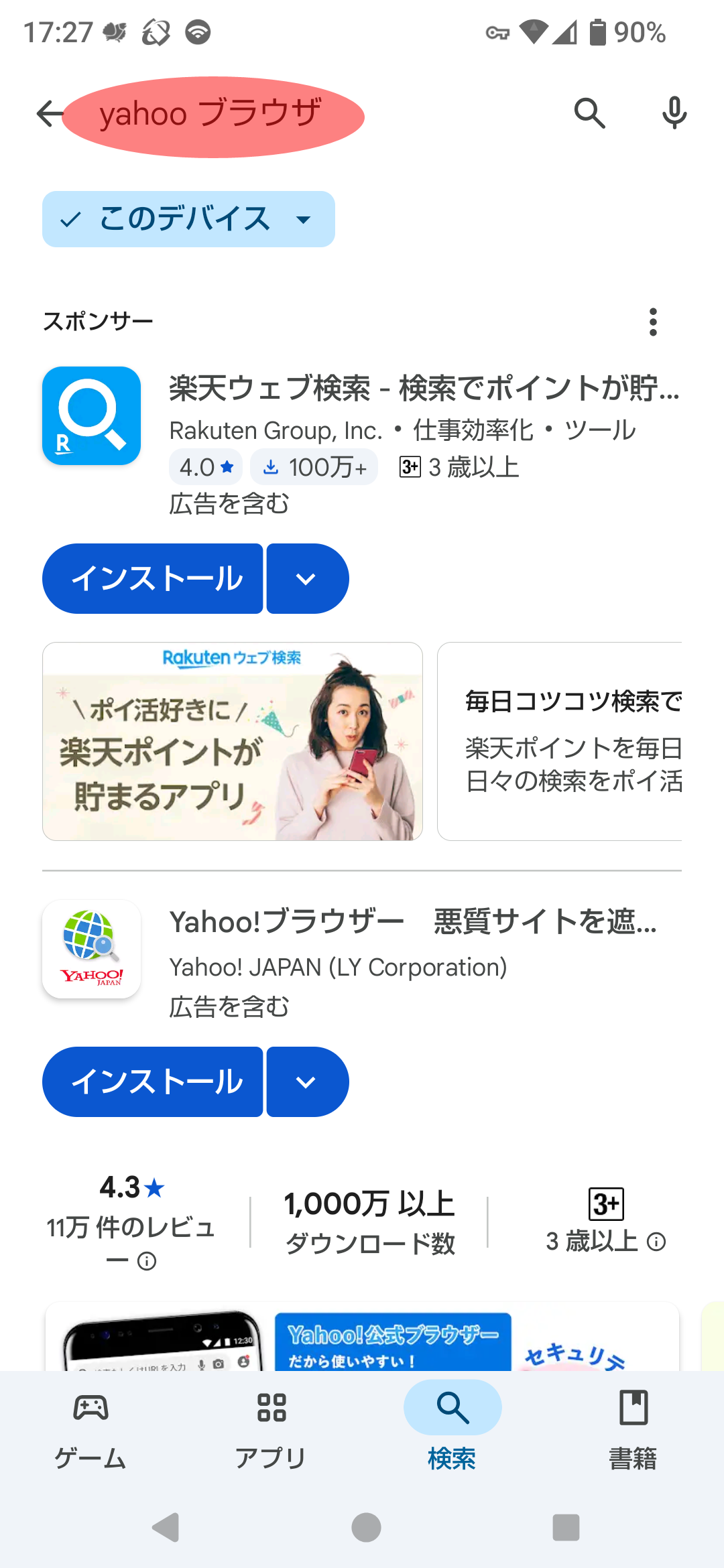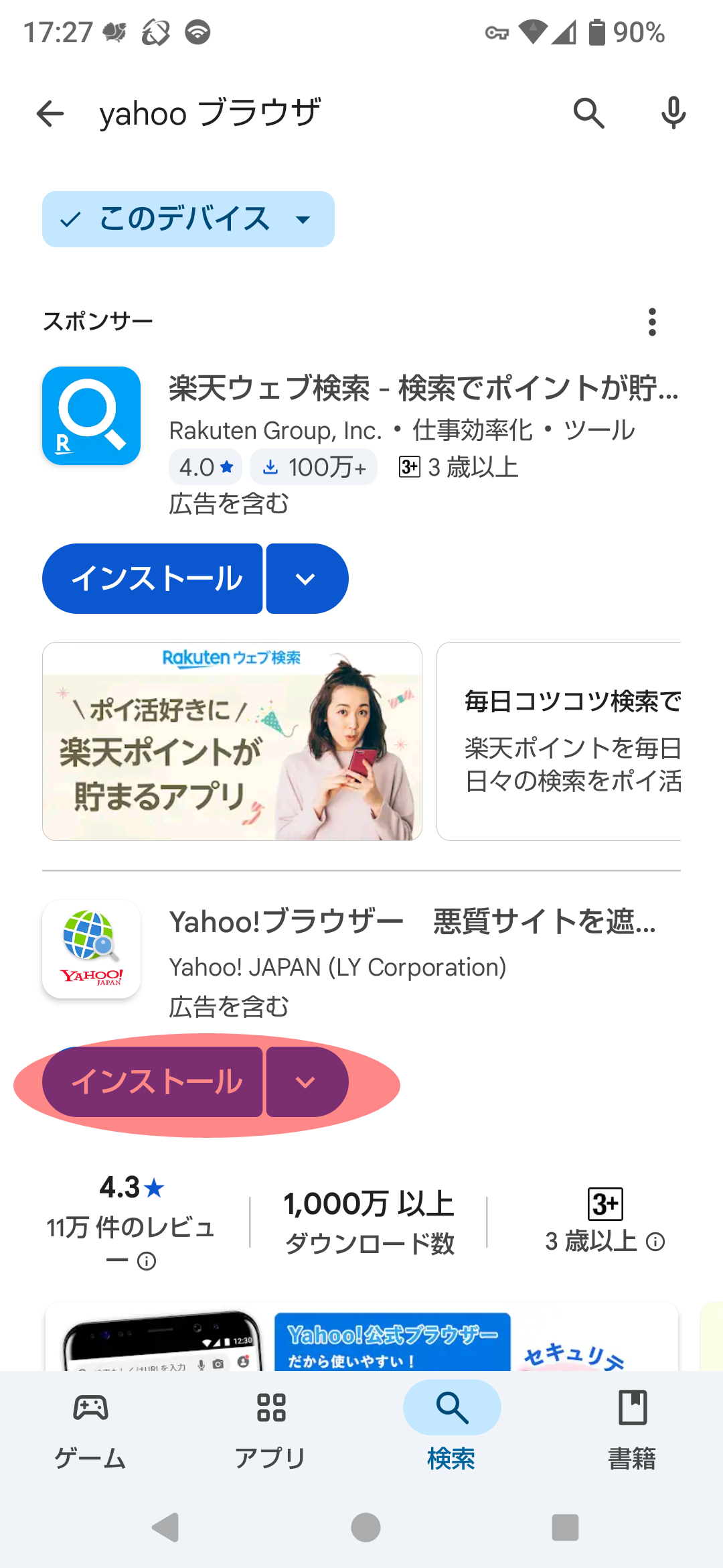 YahooブラウザのAndroidスマートフォンへのインストール方法です。(参考にしてください。)