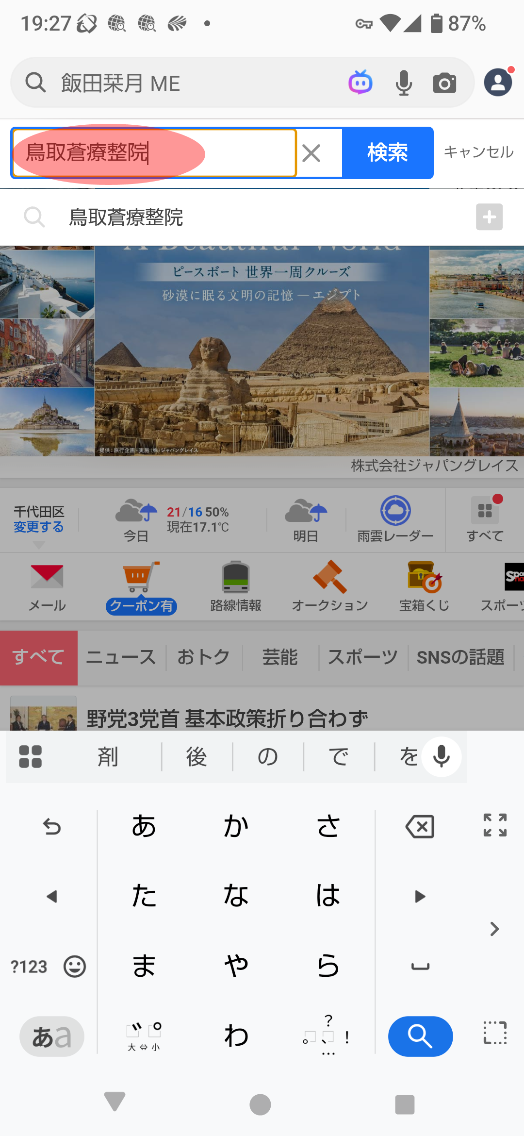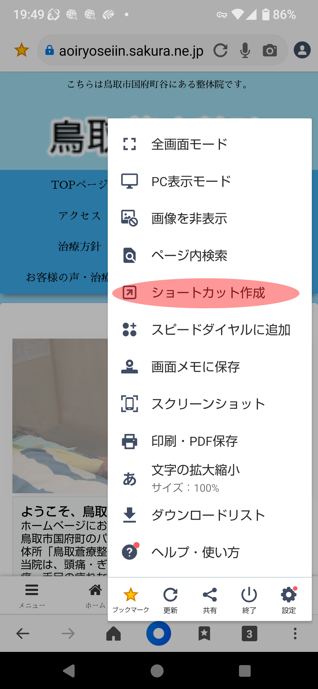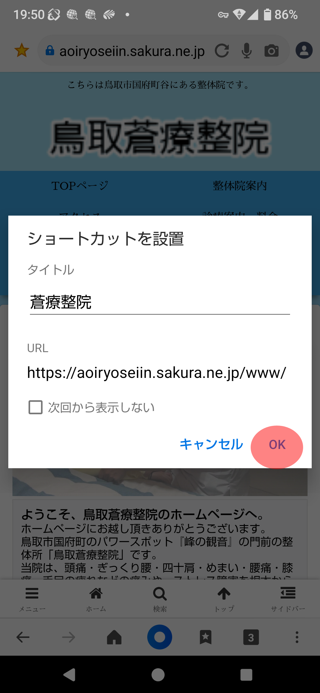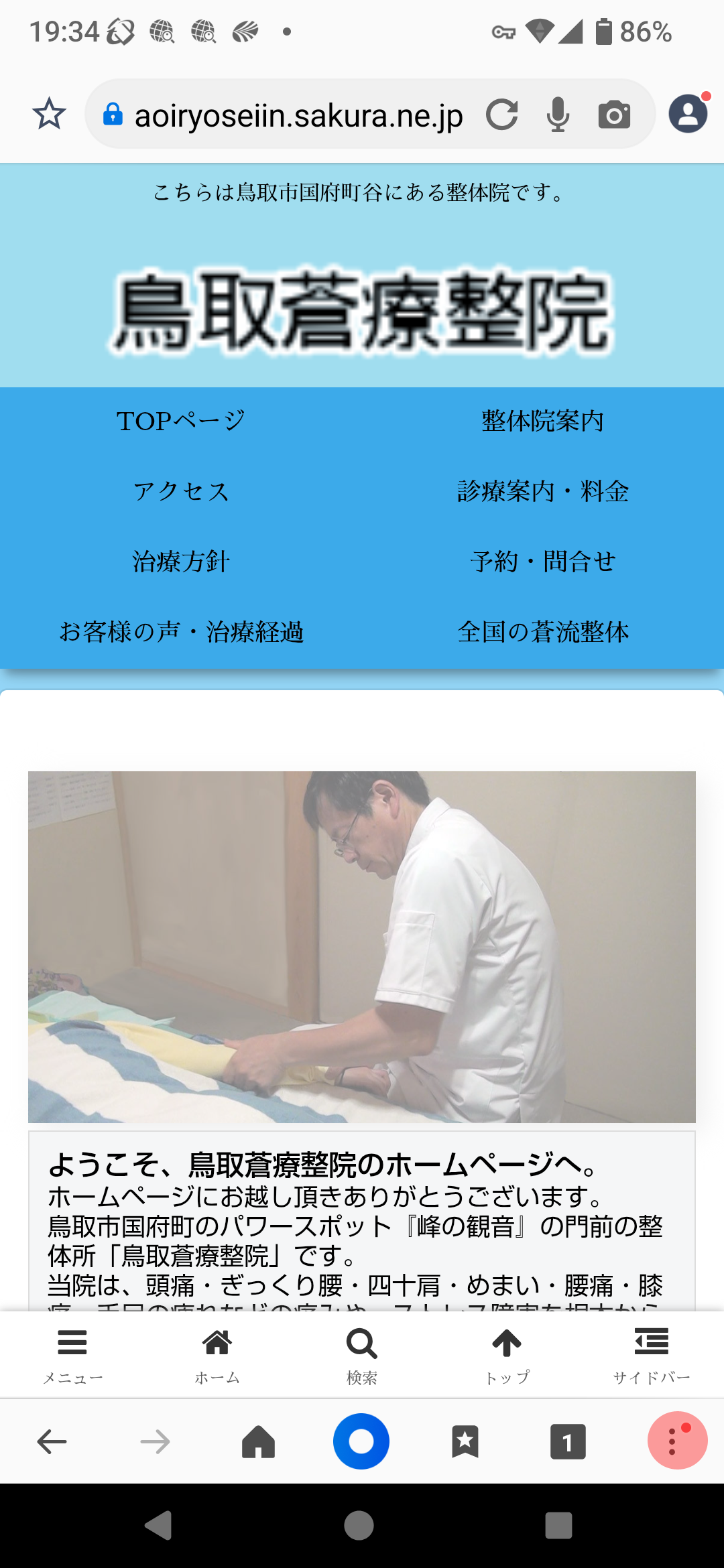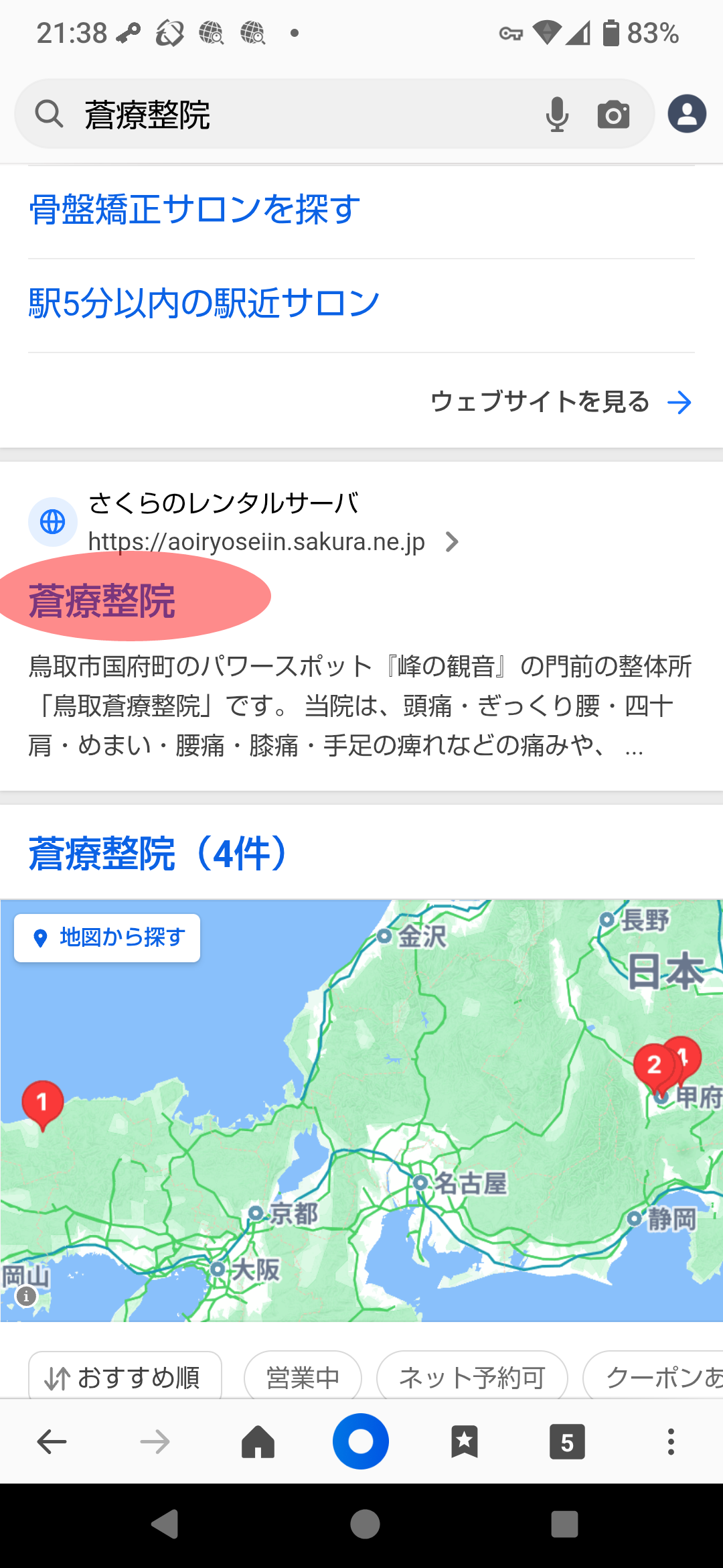 | 14 | ![]() | ブラウザのホーム画面となるので、検索の横の処に、鳥取蒼療整院と入力 |