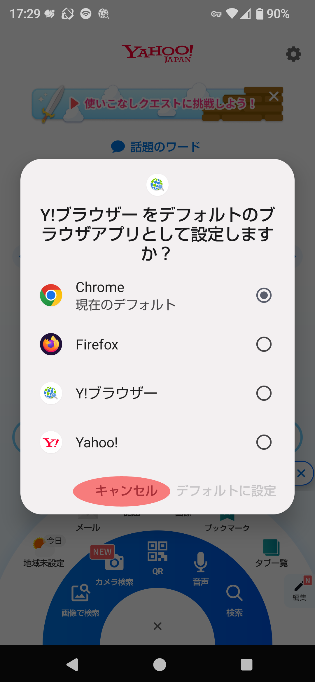 | 12 | ![]() | Y!ブラウザーをデフォルトのデラウザー・・・・・・でも、キャンセルを選択 |
