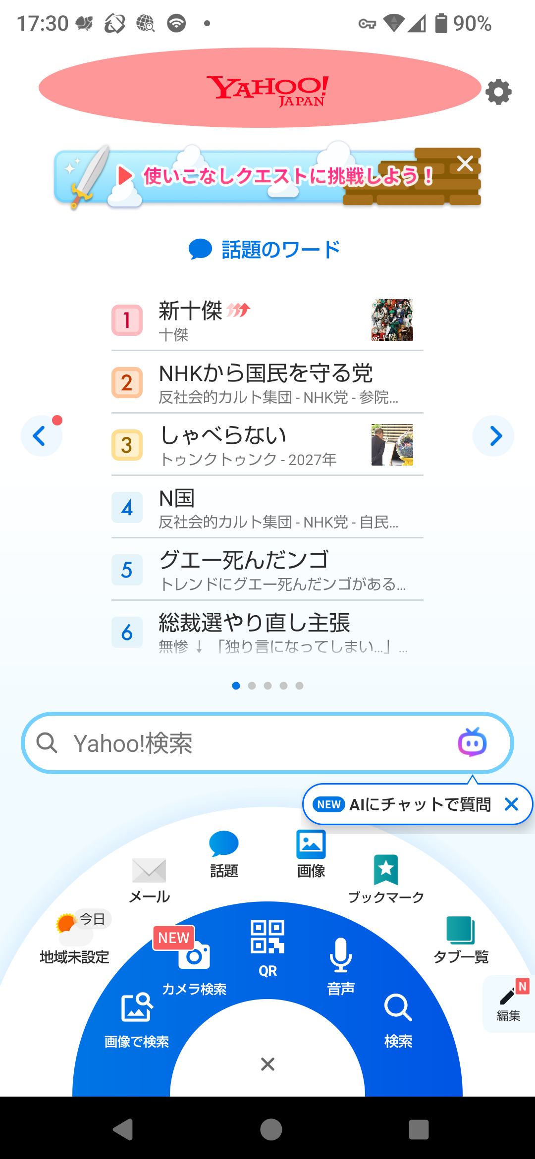 | 8 | ![]() | 通知の送信をY!ブラウザーに許可しますか?と出てくるので、許可を選択 |